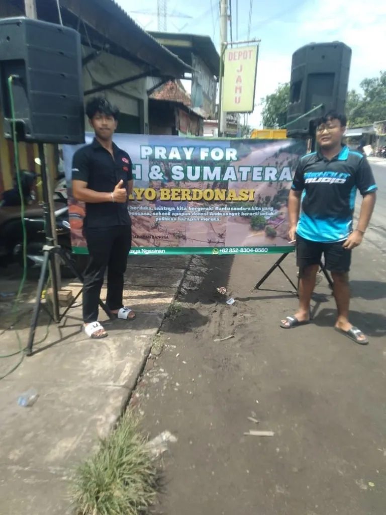 Kami karang taruna dari dusun Ngasinan dan desa Kepatihan ikut merasakan duka yang mendalam atas terjadinya bencana alam ini semoga dengan sedikit bantuan ini bisa meringankan beban masyarakat yang ada di Aceh dan Sumatera…tegas Febian ketua karang taruna.